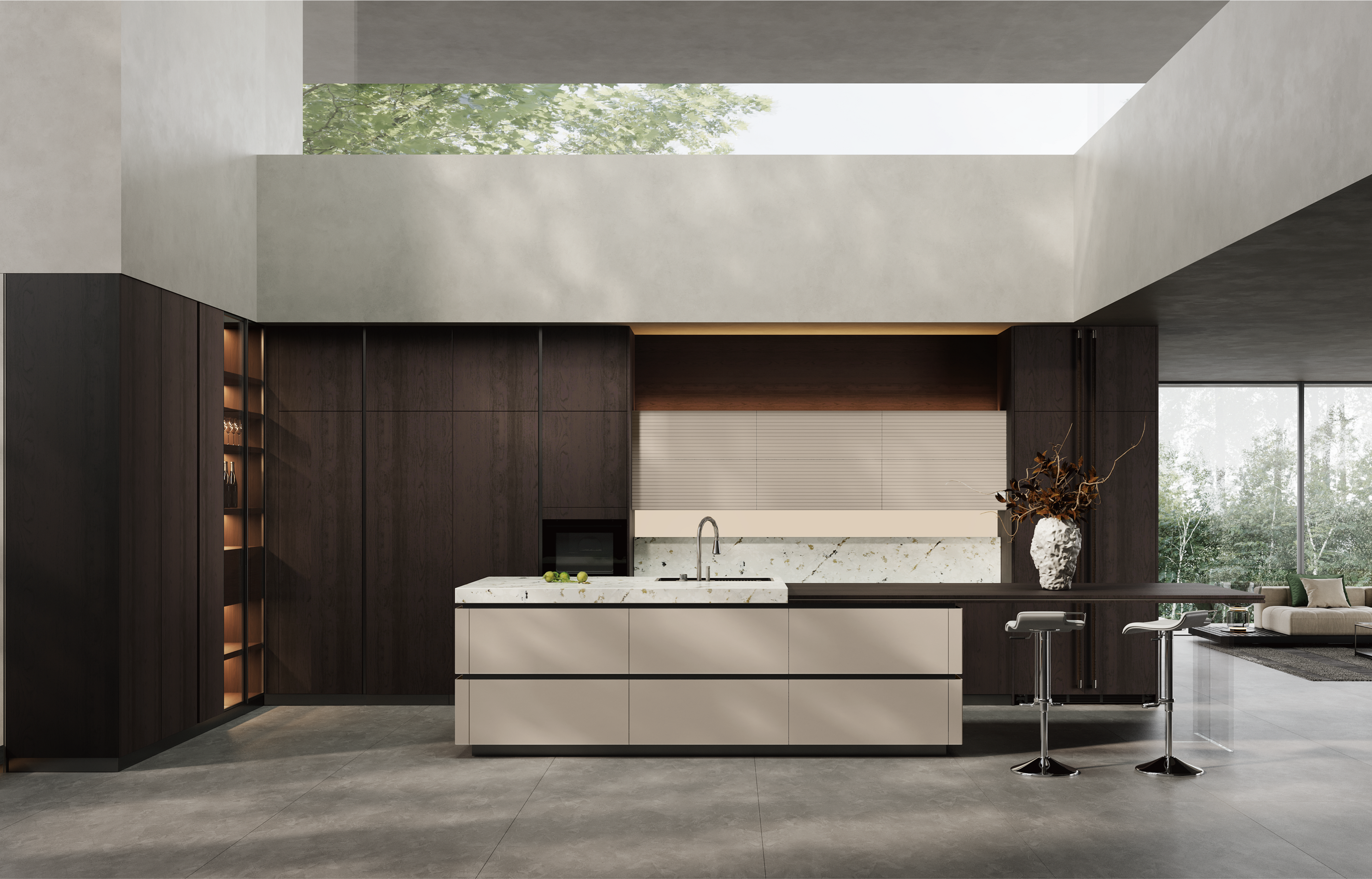 通过BG真人厨柜量体裁柜,定制出适合主厨下厨的烹饪区和洗涤区的舒适高度。